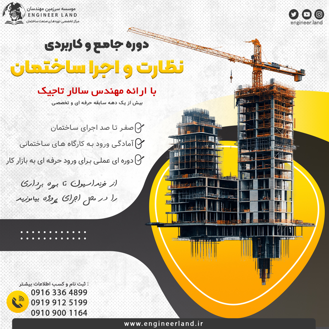 دوره حضوری «نظارت و اجرای ساختمان بتنی» با استاد سالار تاجیک